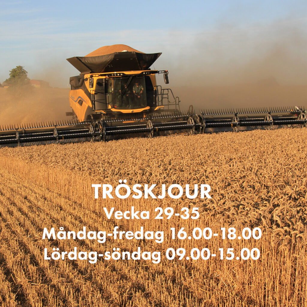Under trösksäsongen har vi journummer där ni når oss utöver vanliga öppettider på verkstad & reservdelar v.29-35. Du når verkstad och reservdelar från ett och samma nummer. Lyssna på knappvalen och tryck för att komma till rätt avdelning.
