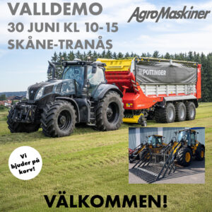 Agro Maskiner i Gringelstad bjuder in dig till en kväll med fullt fokus på vallmaskiner från Pöttinger den 7 mars kl. 18.00. På plats finns även maskiner från JCB och New Holland. Vi bjuder på en kväll fylld med slåtterkrossar, vändare, strängläggare, harvar, finsnittsvagnar och rundballspressar. Våra produktspecialister finns på plats för att besvara alla dina frågor och vi bjuder även på mat. Du hittar oss på Gringelstadsvägen 515, 291 97 Gärds Köpinge.