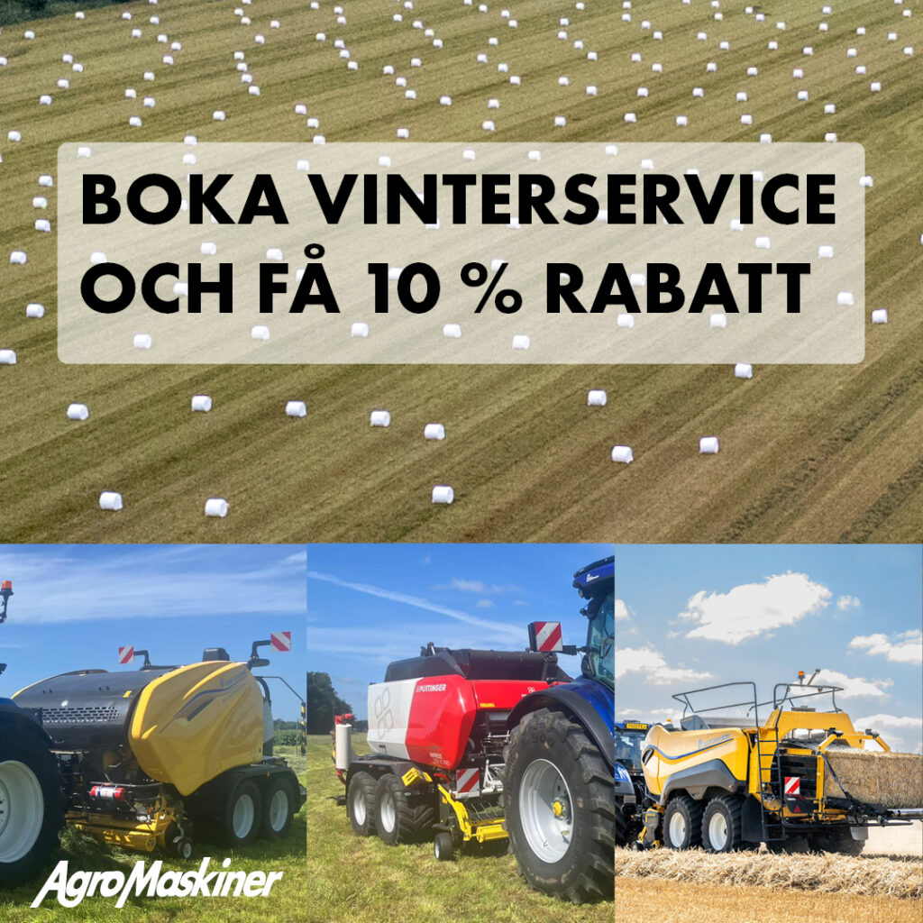 Ta hand om dina vallskördemaskiner och gör dem redo för nästa vallskörd. Boka tid för vinterservice på någon av våra anläggningar senast den 31 januari 2026 och få 10 procent rabatt på arbete och delar. Våra verkstäder erbjuder service utförd av erfarna och välutbildade servicetekniker. De börjar med en noggrann inspektion av din maskin och presenterar därefter ett förslag på rekommenderade åtgärder. Tillsammans går vi igenom förslaget för att hitta den bästa lösningen för dig och dina maskiner.