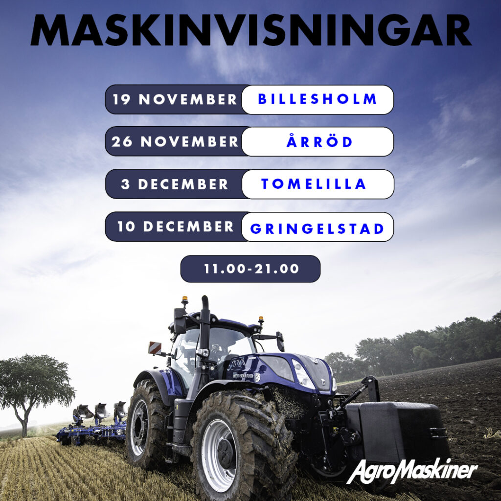 Välkommen på maskinvisning hos Agro Maskiner i Svedala! Vi öppnar upp dörrarna 26 januari, kl. 9.00-18.00 & 27 januari kl. 10.00-16.00.